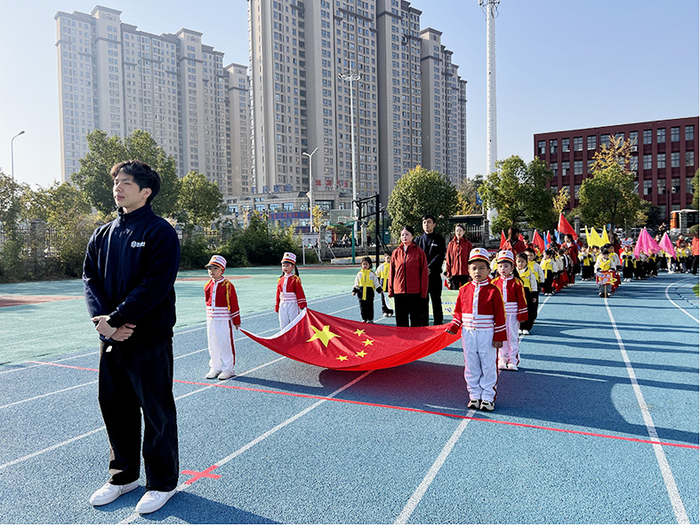 首先登场的是幼儿园合唱团的小朋友们,他们用清澈稚嫩的声音演唱园歌《小小摘星人》。“南幼大家庭,温暖又温馨……”悠扬的旋律回荡在校园,孩子们专注的神情、动听的歌声赢得了全场阵阵掌声,也为运动会奠定了温馨美好的基调。