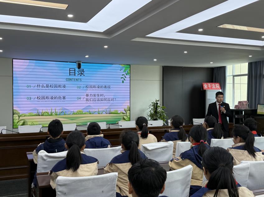 此外,法院工作人员结合真实案例,以“校园欺凌”为主题为学生们带来专题法治课。通过案例分析、法律解读和互动问答,引导学生认识校园欺凌的危害,掌握自我保护方法,提升法律意识和辨别是非能力,树立“知法、懂法、守法、用法”的法治观念。