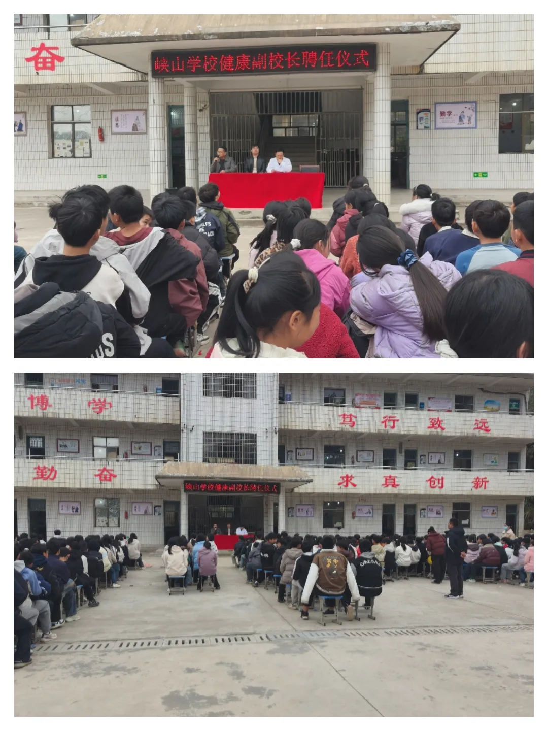 活动现场庄重有序,学生们整齐就座、专注聆听。仪式环节中,学校相关负责人为新聘任的健康副校长颁发聘书,标志着校园健康防护专业协作机制正式落地。随后,学校负责人与健康副校长分别发言,强调当前校园传染病预防工作的紧迫性,阐述了校园健康管理的现状与规划,让在场师生对健康防护工作的重要性有了更深刻认知。