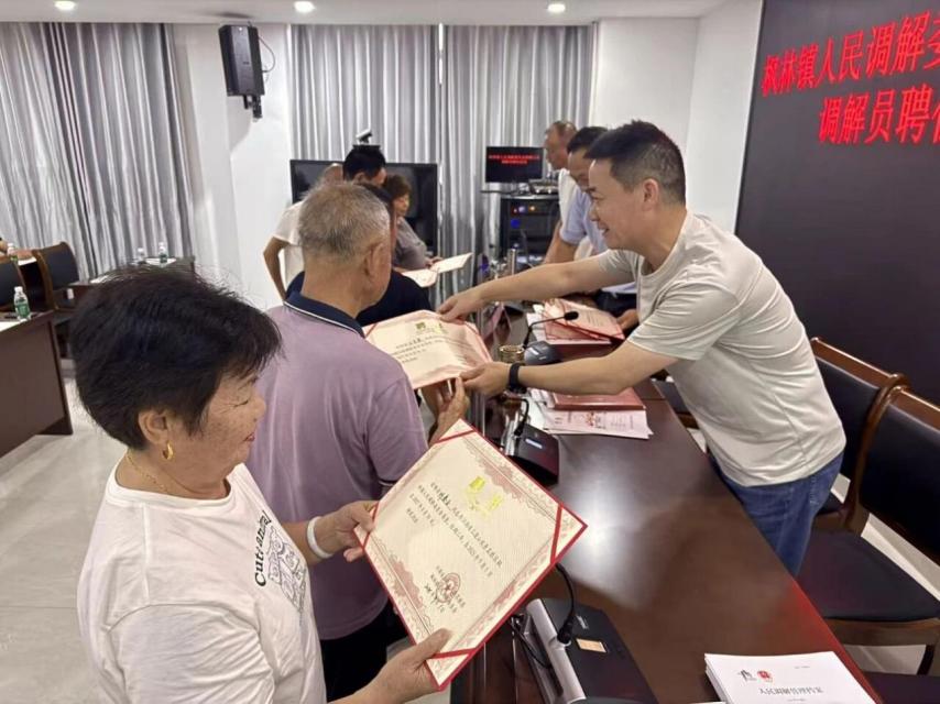 会上,相关负责人宣读了枫林镇人民调解委员会组成人员调整事项,详细解读《枫林镇人民调解员考核激励办法(征求意见稿)》,深入阐述了人民调解在化解基层矛盾、维护社会稳定中的重要意义与核心作用。为进一步充实调解力量,提升调解队伍专业化水平,会议还举行了特聘人民调解员聘任仪式,向新聘的“五老人员”调解员颁发聘书,充分发挥其威望高、情况熟、经验足的优势,助力基层矛盾纠纷化解。