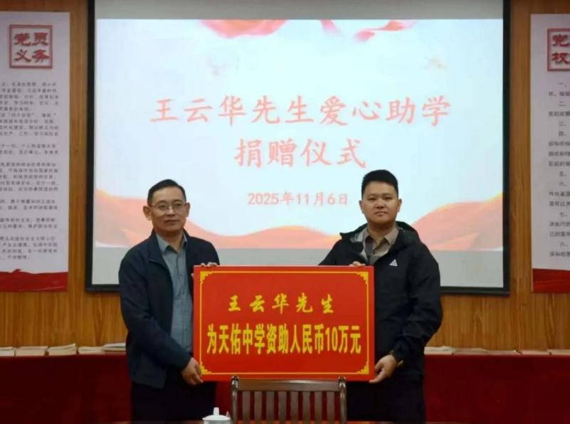 11月6日,婺源县天佑中学举行王云华先生爱心助学捐赠仪式。学校校长主持仪式,捐赠人王云华先生,校领导班子成员出席,相关师生代表参加活动。