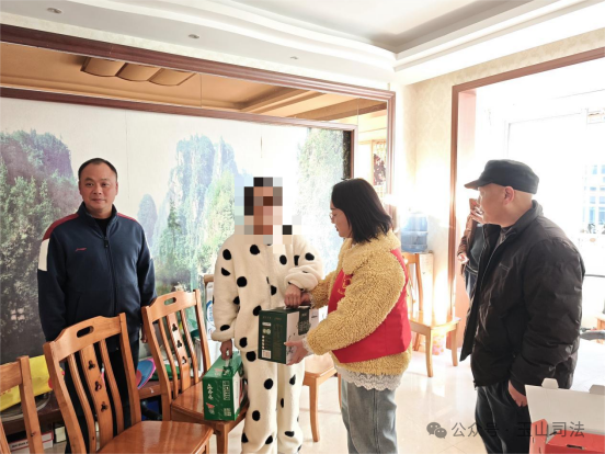 工作组人员共同前往一名处于哺乳期的暂予监外执行社矫对象家中进行走访。该对象目前面临一定的生活与心理压力,走访组不仅送上了关怀慰问,县检察院、司法局工作人员还现场解答了相关监管政策,心理咨询师提供了专业疏导,志愿者协会精准记录了其家庭在育儿、生活方面的困难以对接后续帮扶。