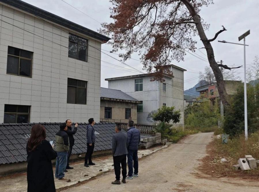 在山塘村,排查组逐户排查村民房前屋后安全隐患,重点核查老旧房屋墙体开裂、户外线路老化、枯树倒伏风险等关键问题,详细记录隐患位置、危险程度及影响范围。针对排查发现的问题,排查组联合村“两委”、供电所专业人员、死树除治专业人员召开现场办公会,量身定制整改方案。