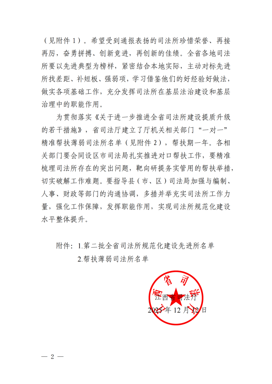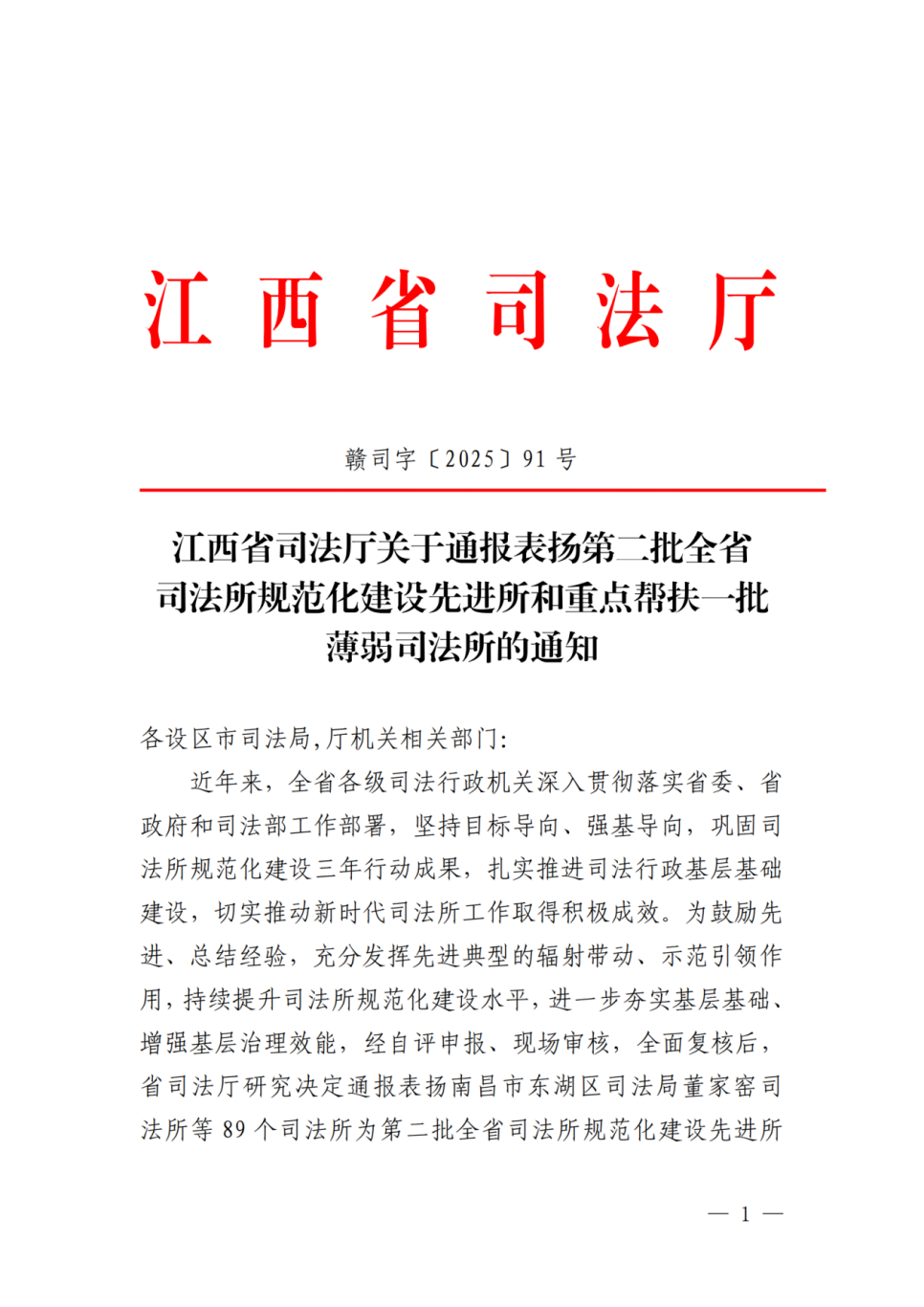 近日,在江西省司法厅印发的《江西省司法厅关于通报表扬第二批全省司法所规范化建设先进所和重点帮扶一批薄弱司法所的通知》中,上饶市广信区司法局石人司法所获评全省司法所规范化建设先进所。