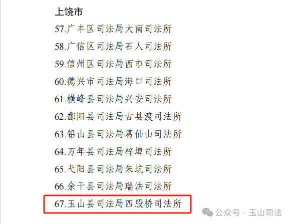 玉山县司法局四股桥司法所被评为全省司法所规范化建设先进所