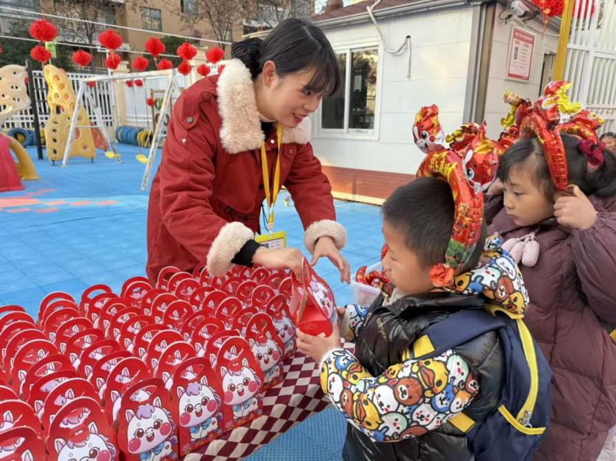 活动前期,老师们精心布置园区,张灯结彩的装饰营造出喜庆祥和的氛围。幼儿入园时,不仅领取了寓意吉祥的马年头饰,还收获了装满美好祝愿的糖盒,在“接福气”的仪式感中开启元旦奇妙旅程。