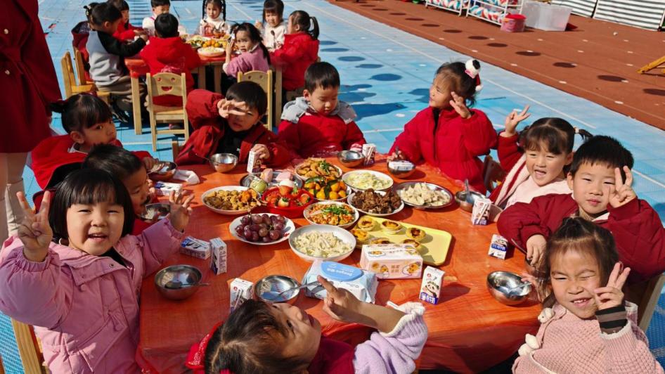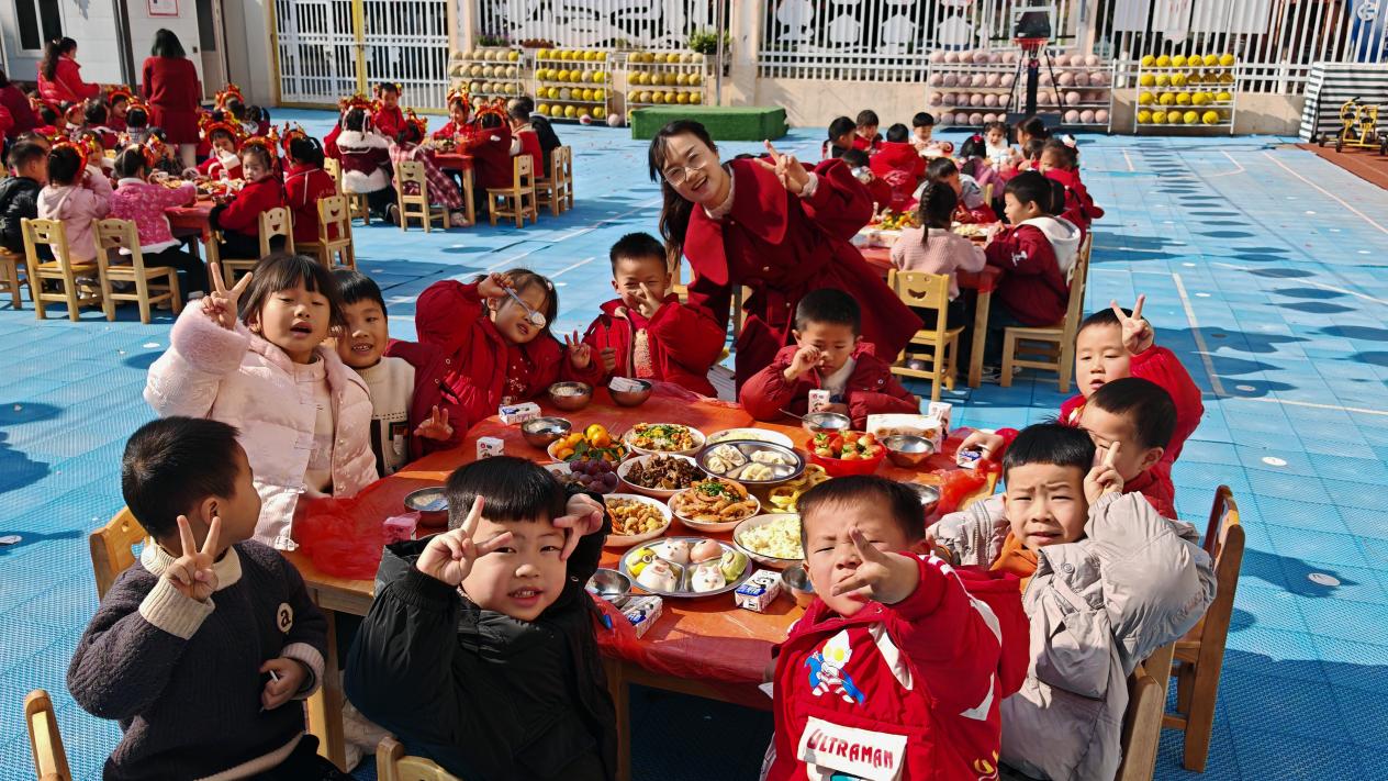 最具特色的“趴大桌 吃大席”民俗体验环节,让幼儿沉浸式感受传统饮食文化。孩子们主动分享美食,践行文明进餐礼仪,在欢乐氛围中体会分享的快乐。此次活动将民俗体验与教育意义深度融合,不仅让幼儿加深了对元旦节日的理解,更在实践中培养了综合素养。