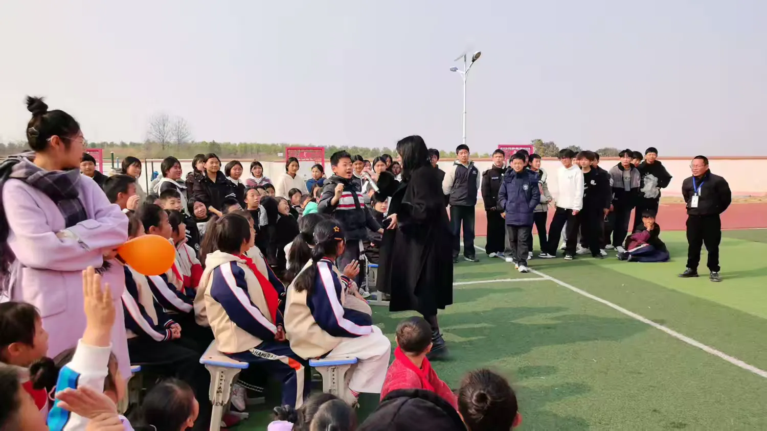 中场互动环节趣味十足,夹气球大赛中,同学们两人一组背靠背冲刺,高年级组额外挑战绕椅,默契配合赢取文创奖品;猜谜语游戏涵盖生活常识、校园趣事与传统文化,同学们踊跃抢答,在欢乐中丰富知识。节目落幕後,校长亲自登台与学生随机组队参与24点互动,师生脑力比拼、频繁互动,在趣味数学游戏中拉近彼此距离。