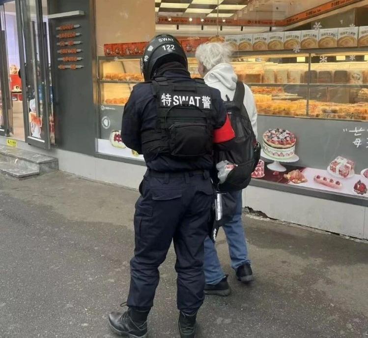 几分钟后,队员将老人安全送至家门口。老人紧握队员双手,声音微颤再三致谢:“谢谢……真的太谢谢你们了!”队员微笑回应“这是我们应该做的”,随即整理装备,重返巡逻岗位。