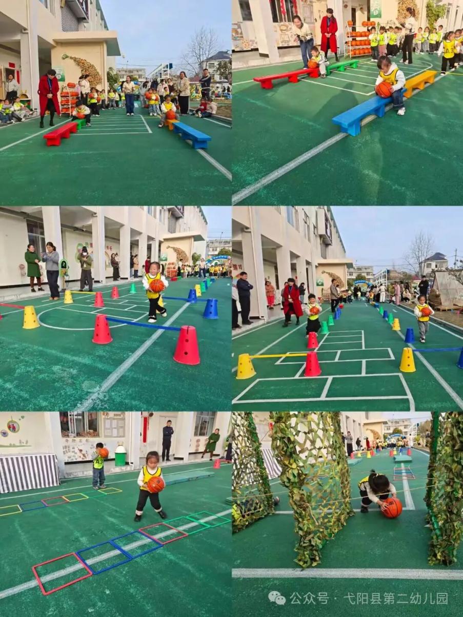 赛场比拼精彩纷呈。障碍跑中,幼儿挑战钻爬网、平衡木等项目,坚持到底的毅力赢得掌声;中大班跑酷挑战赛上,幼儿奋勇争先、团体默契配合,欢呼声不断;小班趣味篮球项目里,幼儿专注参与游戏,萌态萌化全场。