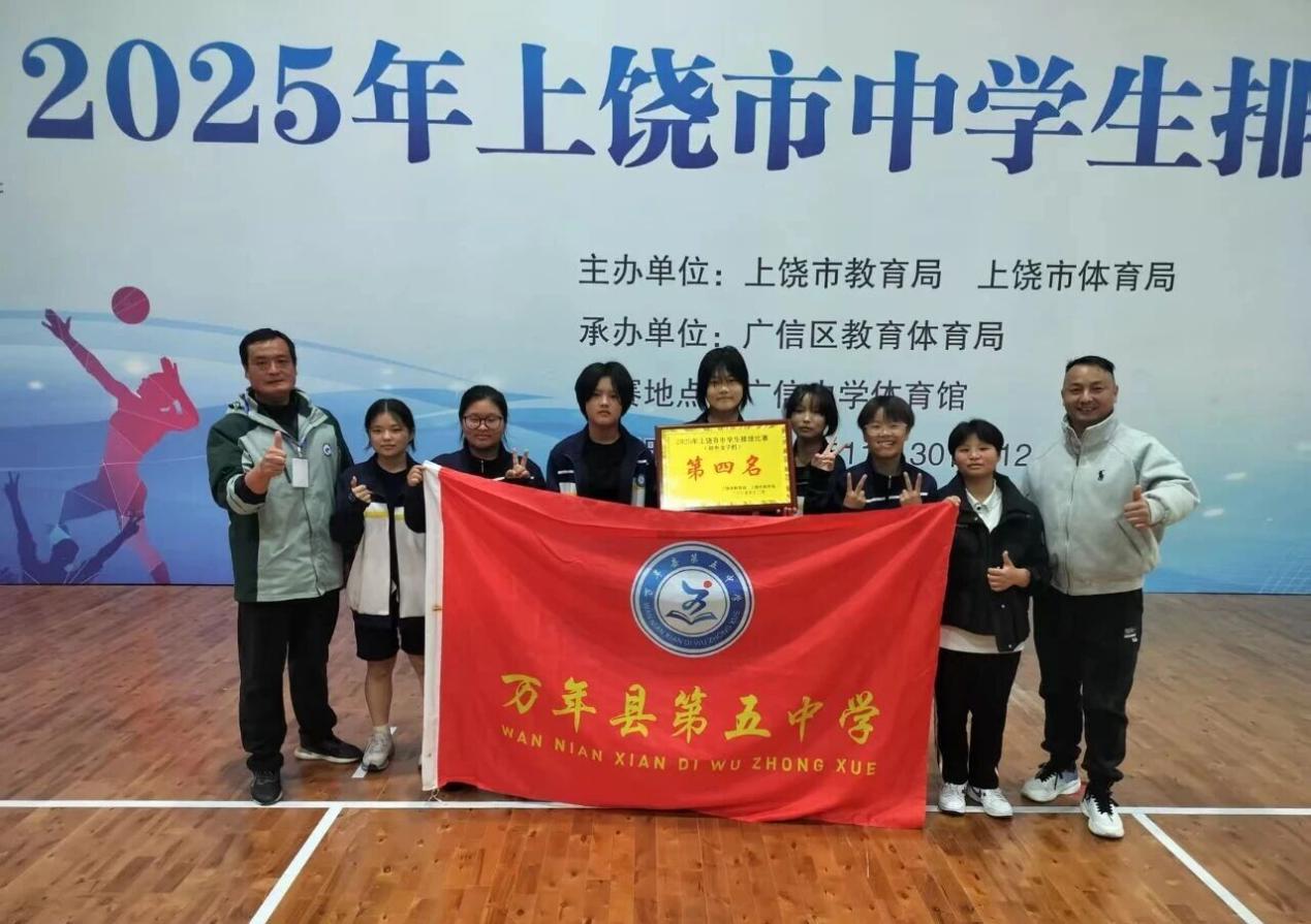 捷报传来,近日,万年县第五中学女子排球队在2025年上饶市中学生排球比赛中奋勇拼搏,凭借扎实的技战术水平和顽强的竞技作风,斩获初中女子组第四名的优异成绩。