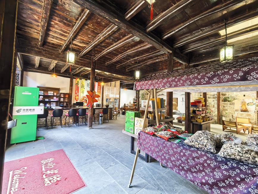 便民服务的暖心细节,更让这座文化邮局充满人情味。业务区内,寄递、汇兑等常规邮政服务一应俱全;针对村内留守老人较多、操作不便的实际情况,工作人员传承全国五一劳动奖章获得者、坚守乡邮路26年的“山乡鸿雁”罗细英的服务精神,专门推出代填快递单据、免费打包、爱心指引等贴心服务,用耐心与细心为老年群体排忧解难。文创区里,“陈坊限定款”伴手礼琳琅满目:状元桥冰箱贴、连四纸书签、非遗主题钥匙扣,每一件都兼具实用价值与纪念意义,成为带走古村记忆的最佳载体。逛累了,便在休闲角落落座,品一杯免费热茶,透过雕花木窗欣赏老街的青石板路与往来行人,在慢时光中感受古村的静谧与惬意。“本来只是想歇歇脚,没想到工作人员特别热情,还主动帮我们介绍当地文化,热茶喝着暖心,服务更是贴心。”来自浙江的游客王女士对便民服务赞不绝口。