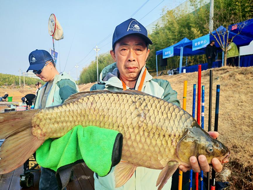 戎德波凭借对本土水域鱼情的精准把握和娴熟钓技,成功牵起一尾重量级大鱼。经过短暂而紧张的搏鱼过程,这尾重达12斤的黄金鲫鱼王被顺利入护,瞬间点燃现场气氛。戎德波凭借关键时刻的惊艳表现,于最后一场赛事14时22分钓获重达12斤的全场最大单尾,以“绝杀”之势锁定胜局,成功斩获本次2026中国湖城・鄱阳休闲垂钓嘉年华首战冠军,为家乡赢得荣誉。