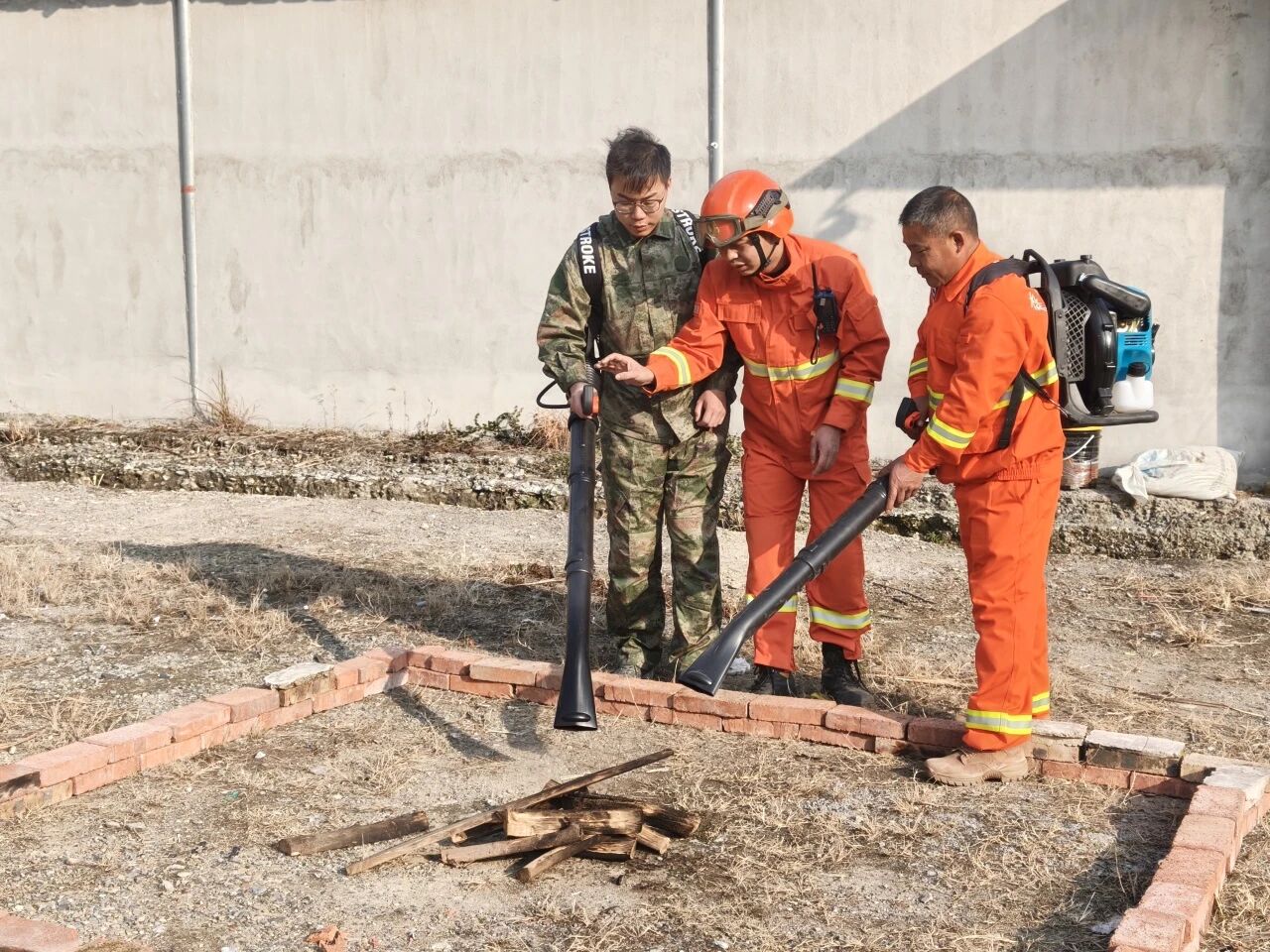 技能培训结束后,预设火点被引燃,模拟火情突发。各小组迅速响应、依案处置,风力灭火机手率先扑打明火,水泵组快速铺设水带、集中供水压制“火情”,管控组在无人机引导下排查零星火点,严防复燃。指导员全程跟踪指导,及时纠正操作偏差。整场演练紧张有序,历时1小时15分钟圆满完成。