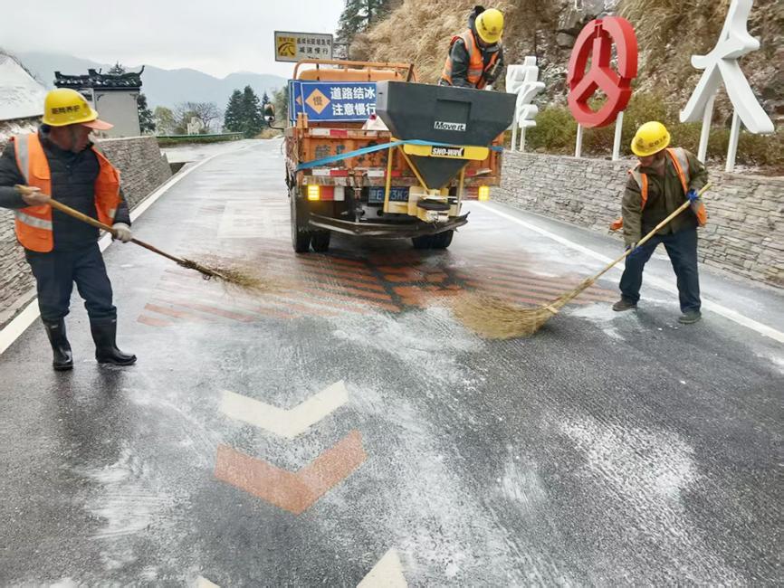 经过2小时连续奋战,8名抢险人员顶风冒雪完成全部作业,结冰路段完全消融,道路恢复安全通行。此次行动不仅保障了沿线群众日常出行,更以“小切口”精准防控筑牢了“最美乡村”交通防线,彰显了婺源公路人守护历史人文通途的责任担当。(方莹)