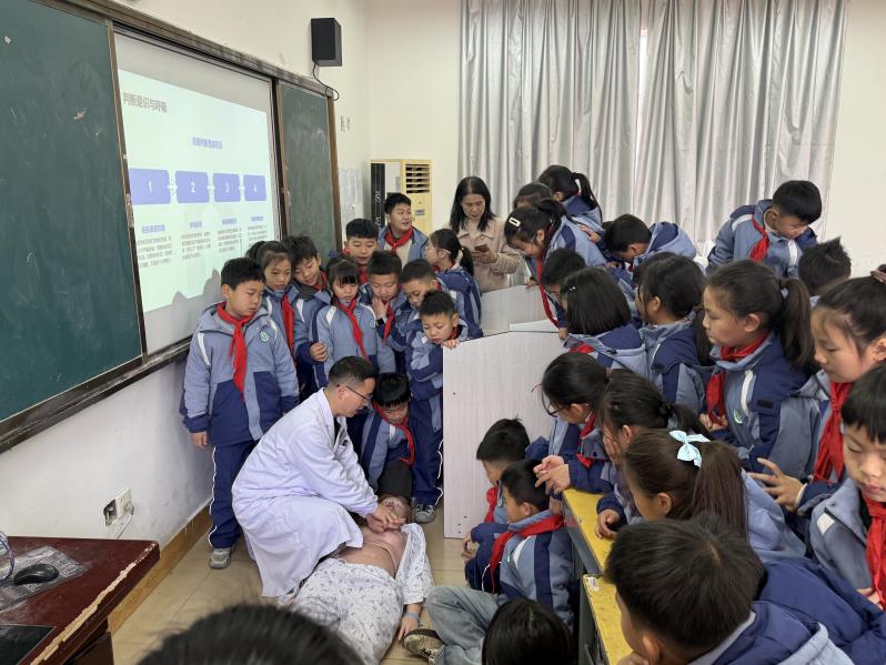 作为普及急救教育的重要阵地,校园是本次公益培训的重点场景。1月19日,铅山县总医院中医院院区率先联合明德小学启动科普活动,针对小学生群体的认知特点量身定制课程,来自该校的200余名师生现场参与培训。活动中,中医院院区急诊科医护骨干凭借多年临床急救经验,结合校园常见的跌倒、磕碰、气道异物梗阻等突发安全事件案例,用通俗易懂的语言、生动形象的表述,为师生们系统传授心肺复苏、创伤应急处置等核心急救知识,将专业医学原理转化为易于理解的生活常识,帮助孩子们快速建立急救认知。