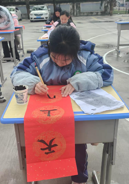 师生们纷纷拿起毛笔认真临摹、创作。同学们虽稚气未脱,但下笔一丝不苟,一笔一划间尽显对传统文化的热爱;老师们笔走龙蛇,将对教育事业的热忱融入笔墨。家长们则把对家人的祝福、对家风的感悟凝于纸上。