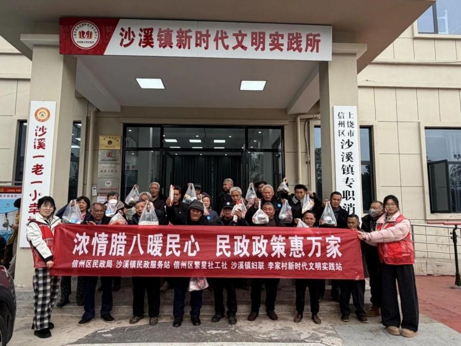 腊八节之际,信州区沙溪镇民政服务站联合镇妇联、民生服务办公室卫生健康岗、李家村新时代文明实践站,共同开展“浓情腊八暖民心,民政政策惠万家”主题活动,将传统节日温情与便民服务深度融合,让冬日暖意浸润人心。