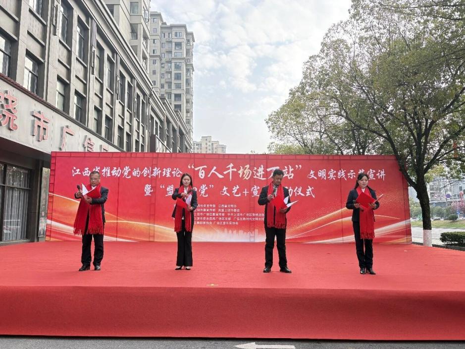 1月29日下午,由中共江西省委宣传部、江西省文明办主办,中共上饶市委宣传部、民盟上饶市委会等单位联合承办的“党的创新理论‘百人千场进万站’文明实践示范宣讲暨‘盟心向党’文艺+宣讲启动仪式”在广信区新时代文明实践中心成功举行。