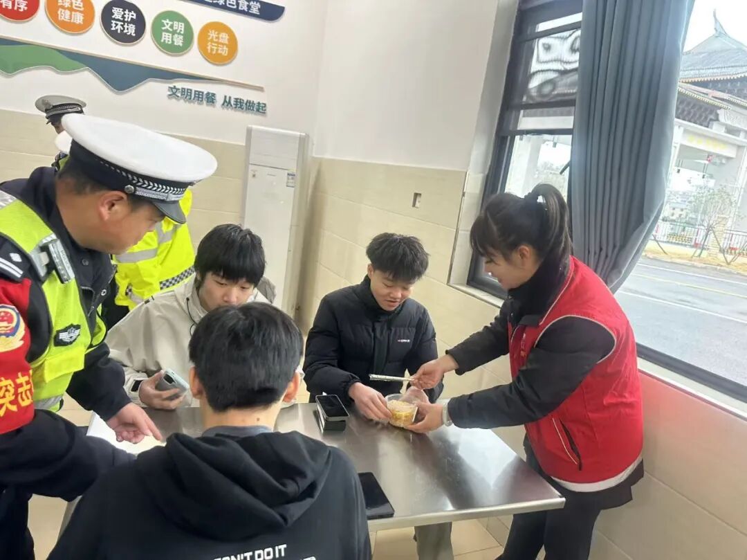 捧着热乎的面条和姜茶,孩子们脸上的紧张与不安渐渐消散。“本来又冷又饿,心里特别慌,没想到你们想得这么周到,这碗面吃得太舒服了!”“谢谢哥哥姐姐,你们就像家人一样,让我们感觉特别温暖,我要拍点照片给爸妈让他们不用担心。”一句句朴实又真诚的感谢,在驿站里此起彼伏。孩子们一边吃着热食,一边向工作人员道谢,稚嫩的话语里满是真挚的感激。工作人员也耐心陪伴在旁,轻声安抚、细心照料,与孩子们亲切互动,原本焦急的现场氛围,很快被温暖与安心所取代。