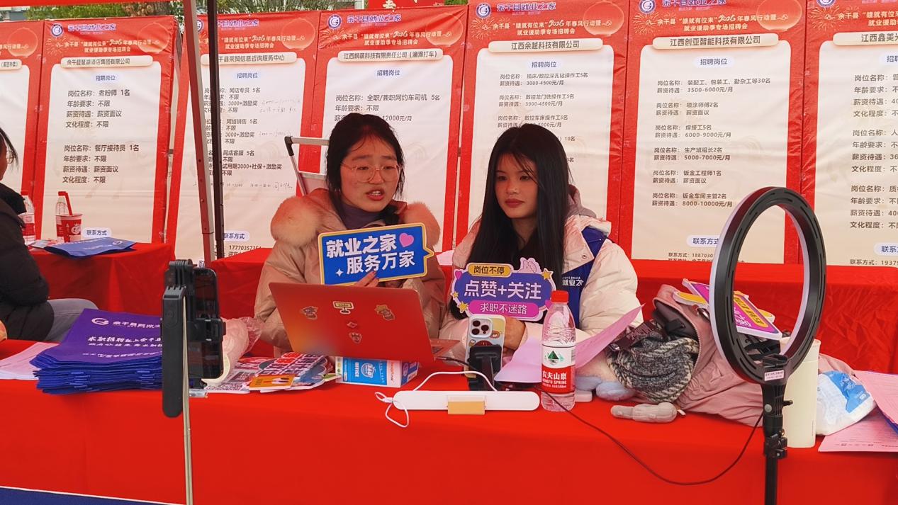 无法亲临现场的求职者也不必遗憾。余干县就业之家同步搭建直播间,主播与现场10余家企业代表热情地向屏幕前的观众推介岗位,实时解答疑问,打破了信息壁垒,让更多人在指尖滑动间就能找到心仪的工作。