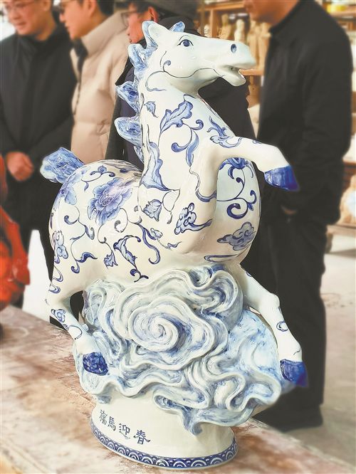 刚出窑的“福马迎春”陶瓷雕塑。记者 王景萍摄