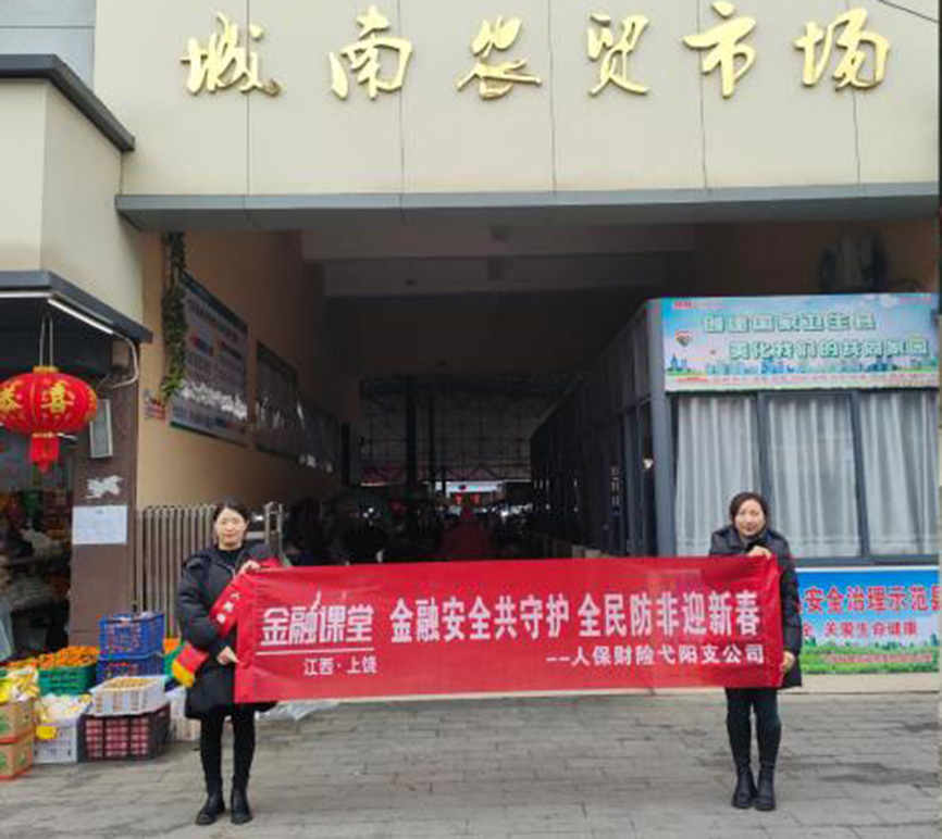 近期,为切实提升社会公众金融风险防范意识,守护广大群众“钱袋子”,有效防范非法集资、电信网络诈骗等非法金融活动,人保财险弋阳支公司围绕“金融安全共守护,全民防非迎新春”主题,组织开展了2026年新春金融宣传教育活动,以实际行动践行金融企业社会责任。