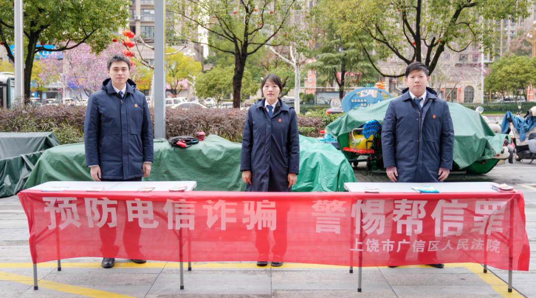 2月27日上午,上饶市广信区人民法院刑庭组织工作人员走进上饶友邦商业广场,开展了一场以“预防电信诈骗警惕帮信罪”为主题的法治宣传活动。