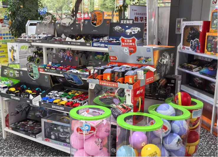 专柜设三大功能区:文具专区涵盖书写、备考全品类学习用品;运动器材专区提供球类、跳绳等装备,倡导劳逸结合;益智玩具专区汇集积木、盲盒等,丰富亲子休闲场景。专柜与图书、党政读物区域相邻布局,实现客流互导、业态互补,构建“图书引流-多元转化-双向赋能”的消费链条,为门店提质增效注入新动力。