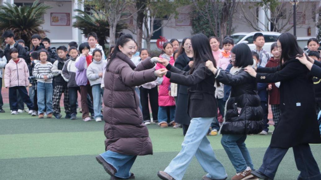 “力拔山河”拔河赛中,各年级组齐心协力,呐喊助威声此起彼伏;舞蹈环节,老师们手牵手随乐起舞,尽显活力;套圈游戏区欢声不断,现场洋溢着轻松愉悦的氛围。