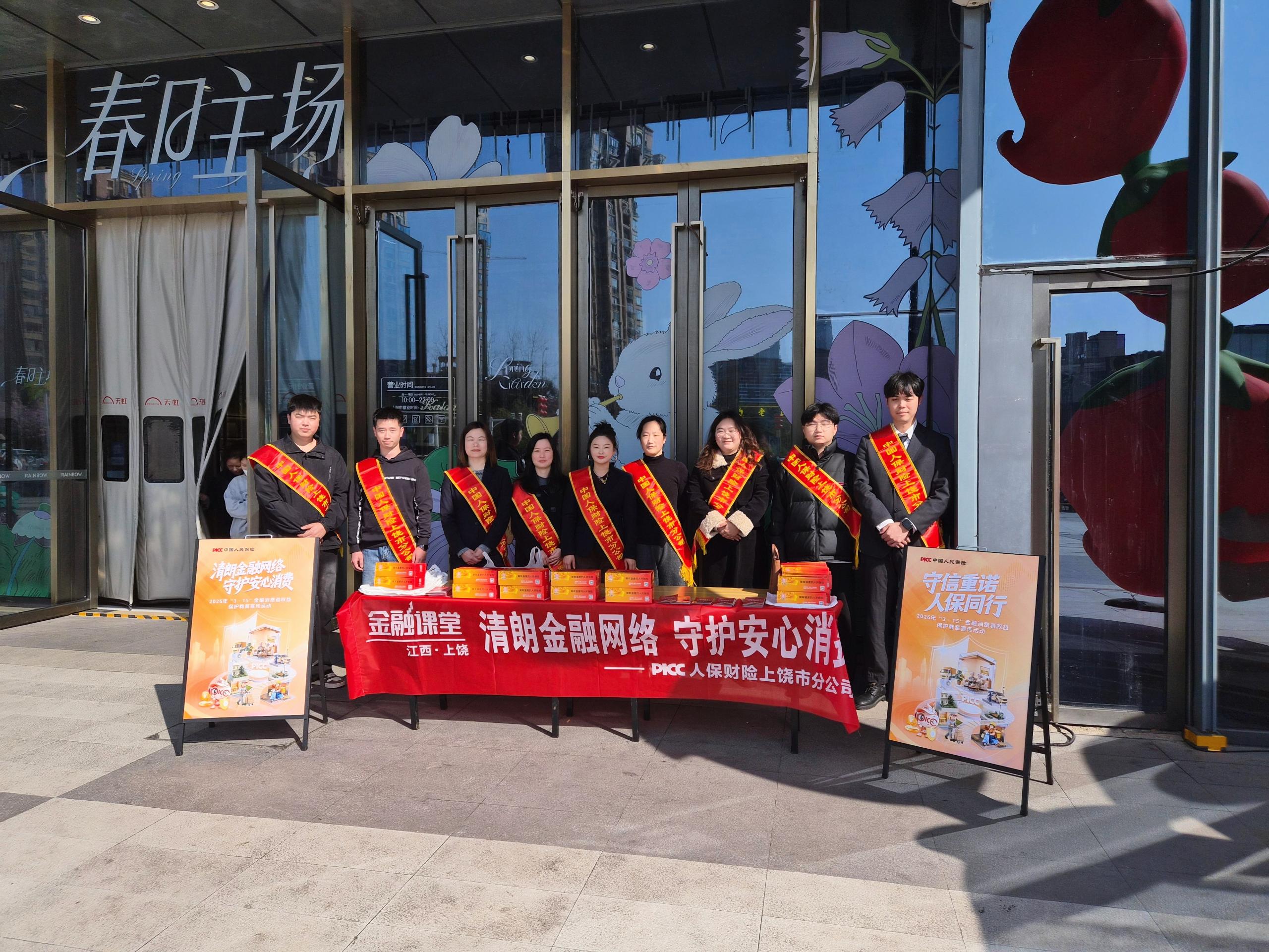 为深入推进2026年“3·15”金融消费者权益保护教育宣传活动,切实践行“人民保险、服务人民”的初心使命,营造清朗有序的金融消费环境,3月10日,人保财险上饶市分公司组织开展“清朗金融网络 守护安心消费”主题宣传活动,走进商圈广场,聚焦新就业群体与老年群体,通过“一对一”讲解、现场答疑等方式,将金融消保知识与便民服务送到群众身边。