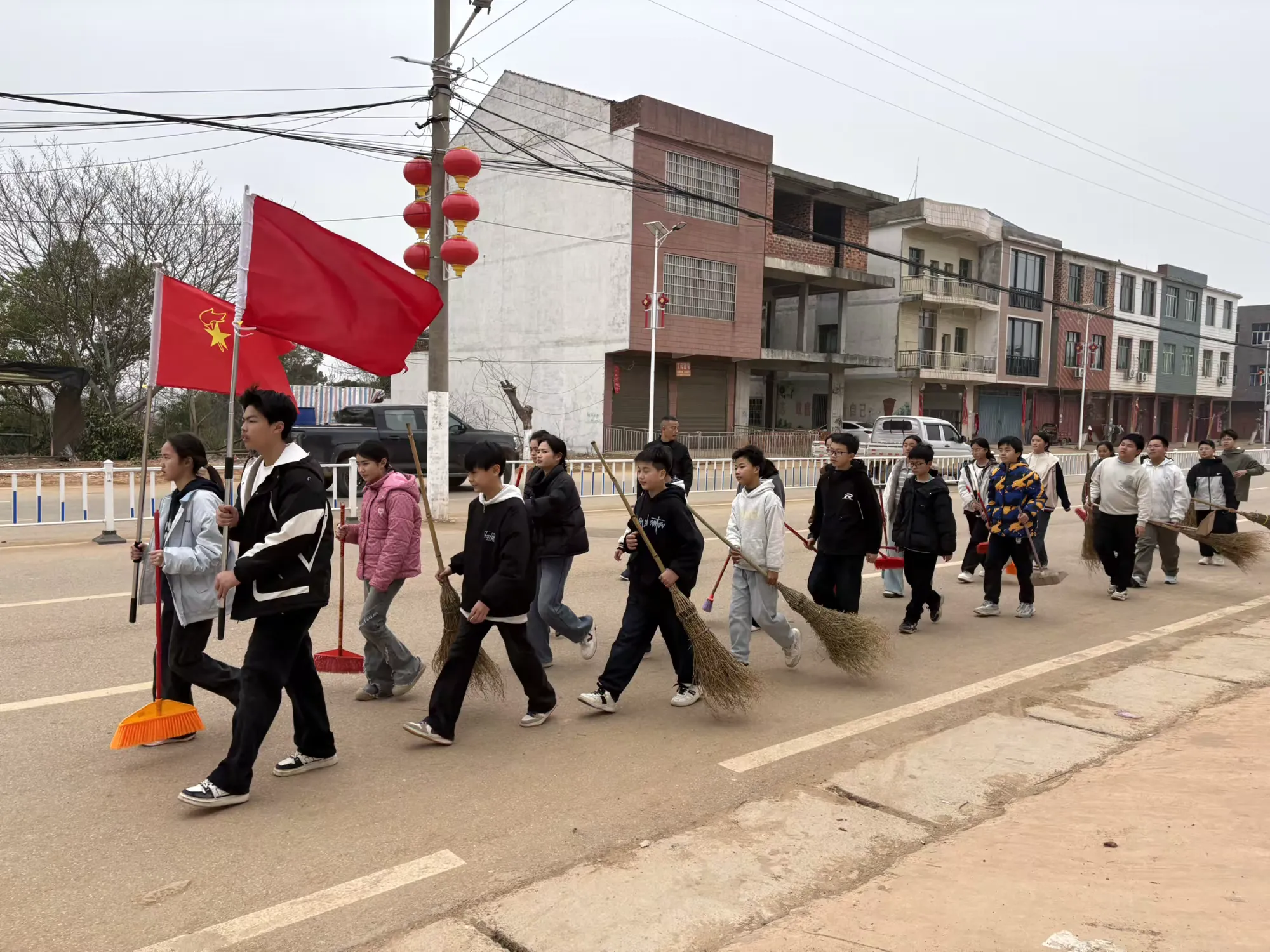 志愿服务活动中,同学们首先前往东源村委会开展环境卫生清扫活动。大家分工明确、配合默契,手持扫帚、簸箕等工具,认真清理地面垃圾、落叶与杂物,不怕苦累、不惧脏污,干劲十足,用稚嫩双手为环境整洁贡献力量,用行动诠释奉献的快乐。随后,同学们前往东源广场开展全面清洁,学校领导以身作则、全程陪伴,细致指导清扫工作,不放过任何卫生死角;相关负责人主动协助搬运垃圾、指导操作,用实际行动传递正能量。