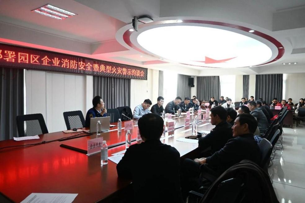 会上区工信局解读工贸行业重大隐患判定标准;区消防大队部署园区企业消防安全工作并组织观看全国典型火灾案例宣传片;区应急管理局领学工贸企业安全生产管理;区市管局就特种设备安全使用进行宣讲;区生态环境局对企业作复工复产生态环境安全生产风险隐患提示。