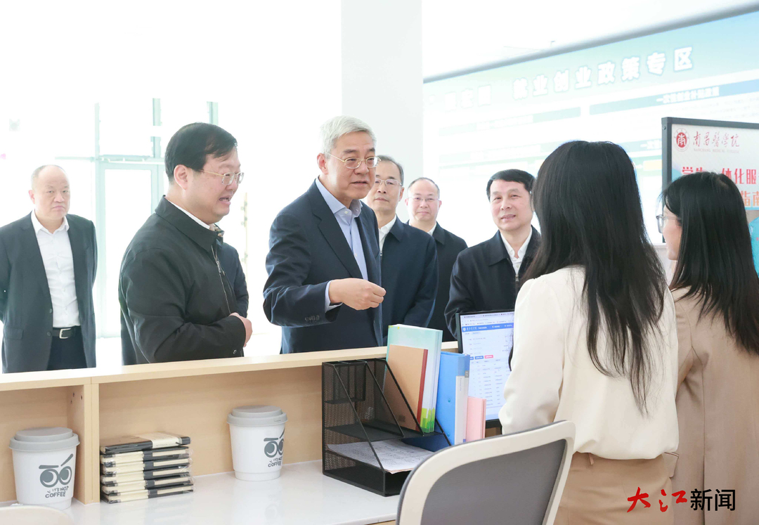 南昌航空大学有着特色鲜明的学科优势。在创新创业学院,尹弘观摩学生创新创业成果,察看大学生创业工作室。他说,学生是创新创业的生力军。要立足学生创业需求,研究细化支持政策,为创新创业营造良好环境。火箭广场上,航空相关产业专场招聘会吸引了我省不少知名企业和广东省江门市组团参加。尹弘鼓励毕业生以从容自信的心态应聘,充分展示自己所长,收获称心如意的工作。希望用人单位聚焦毕业生的关心关切,用美好前景、优质岗位吸引更多人才。