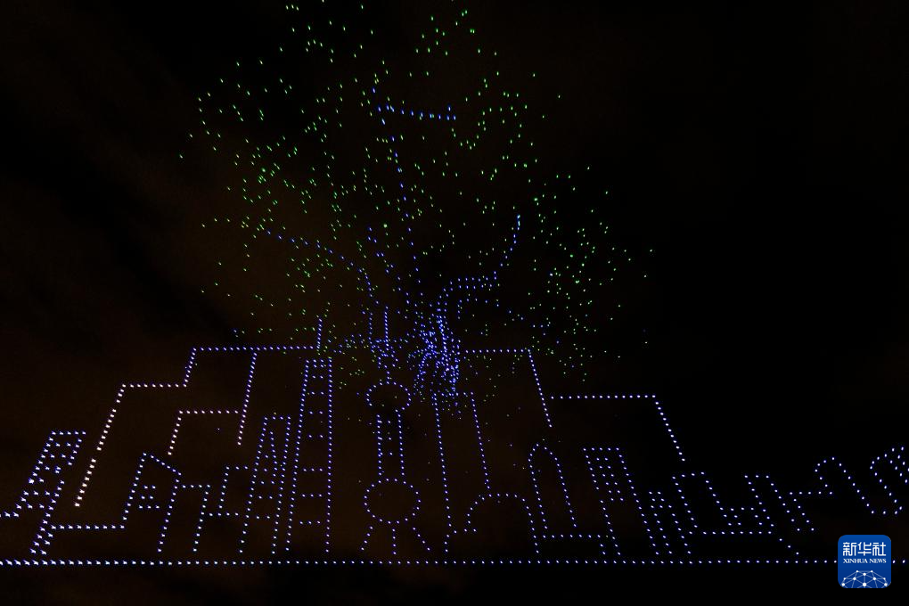 9月19日,人们在徐汇滨江主会场欣赏无人机灯光秀。