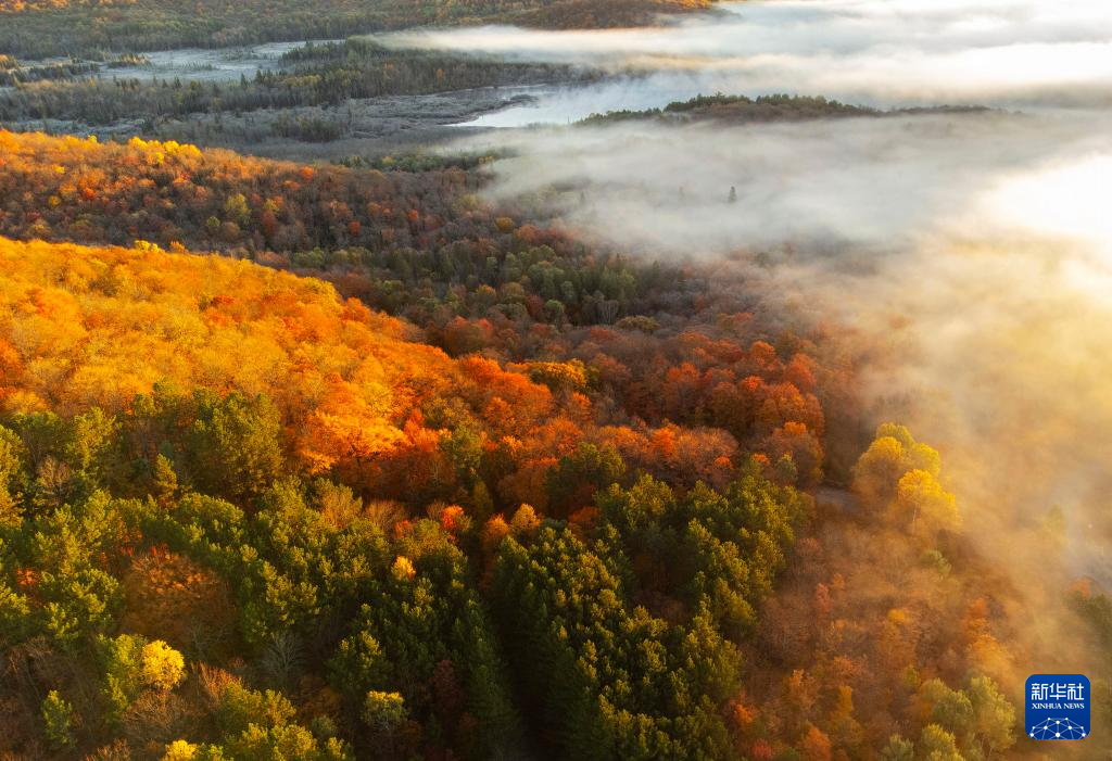 这是10月9日在加拿大安大略省亨茨维尔一处公园拍摄的秋色。