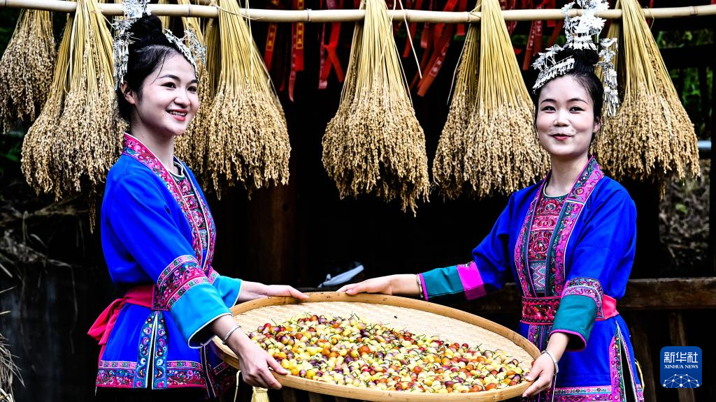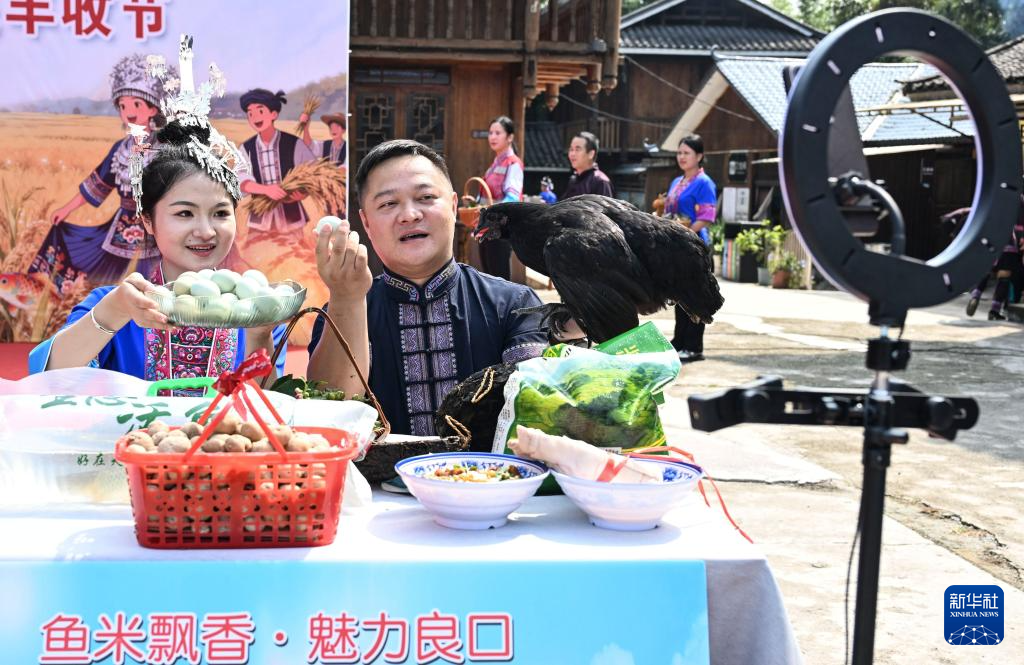 10月17日,广西三江侗族自治县5个乡镇的群众聚集在良口乡产口村,开展形式多样的庆丰收活动。