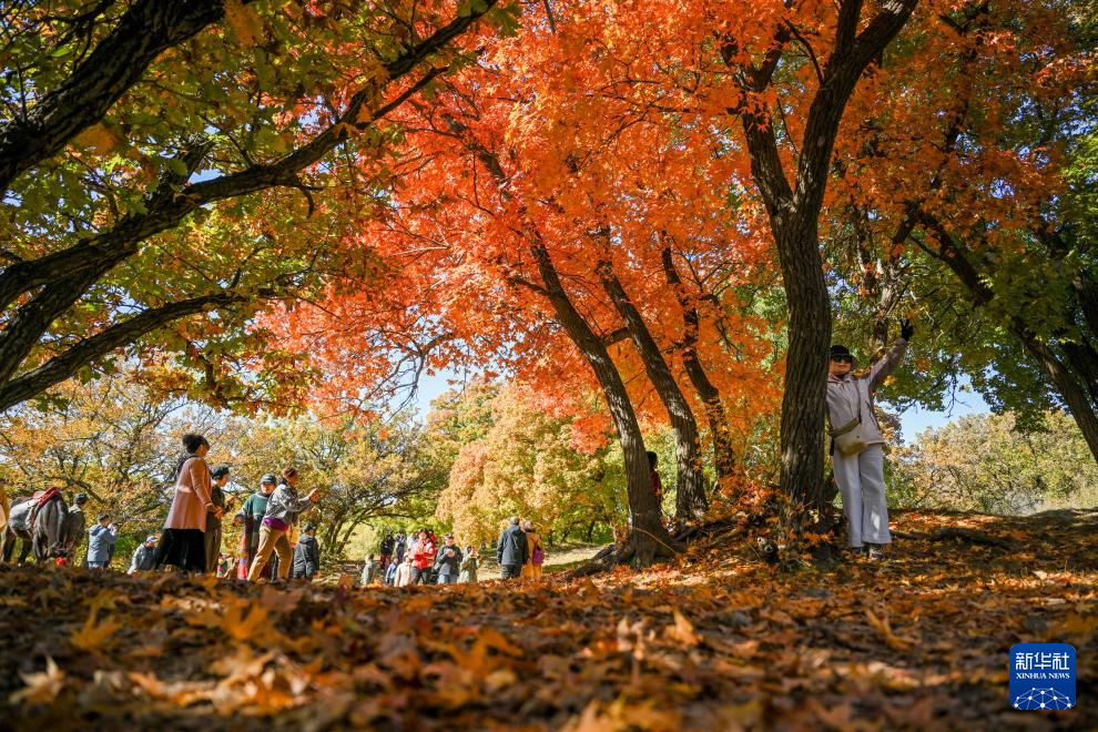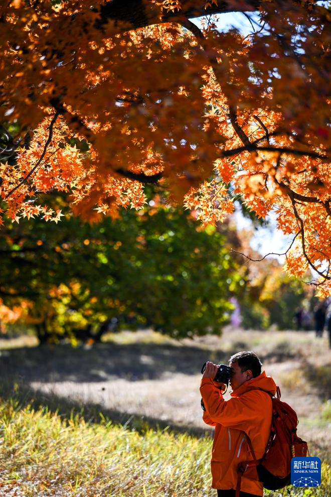 这是10月18日拍摄的乌旦塔拉五角枫森林公园美景(无人机照片)。