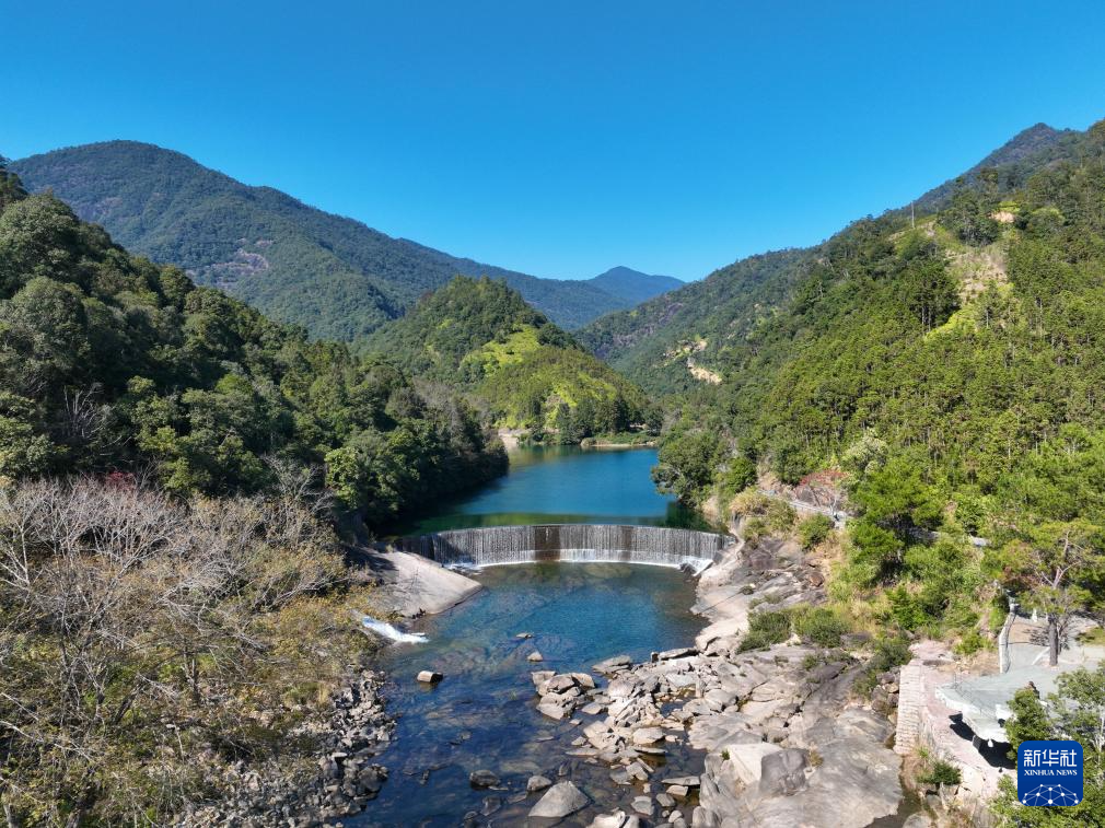 近日,福建武夷山天蓝水碧,绿水青山中色彩斑斓的枫树、水杉等林木点缀其间,呈现别样的冬日景致,吸引游客前来旅游休闲。