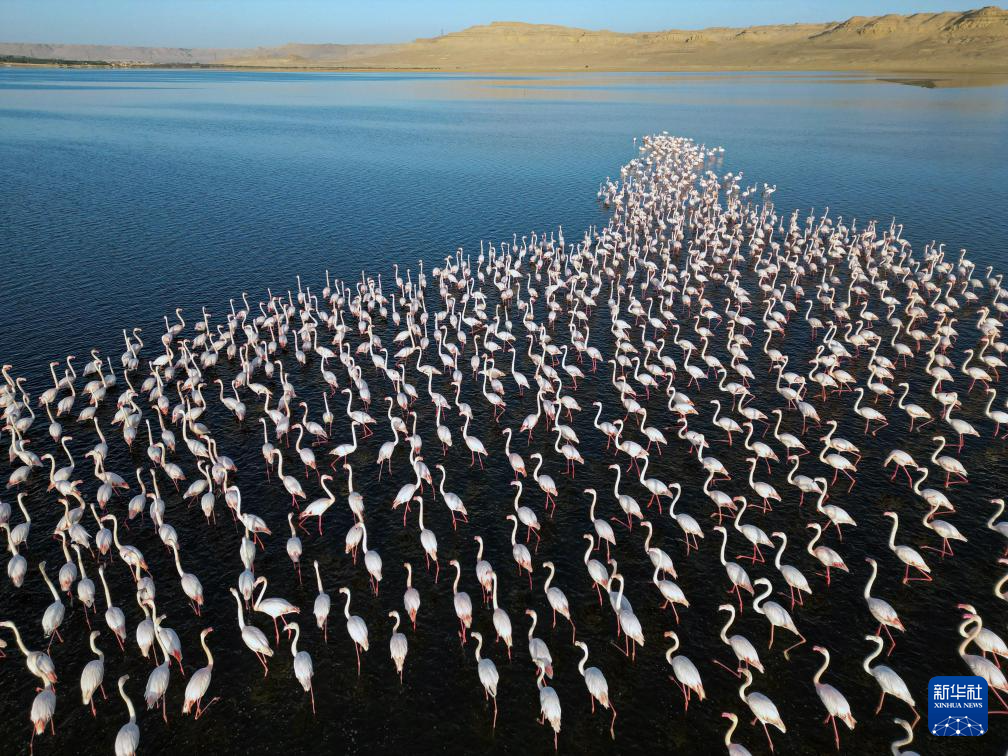 每年冬季,大批火烈鸟会飞抵埃及法尤姆省内的加龙湖觅食越冬。