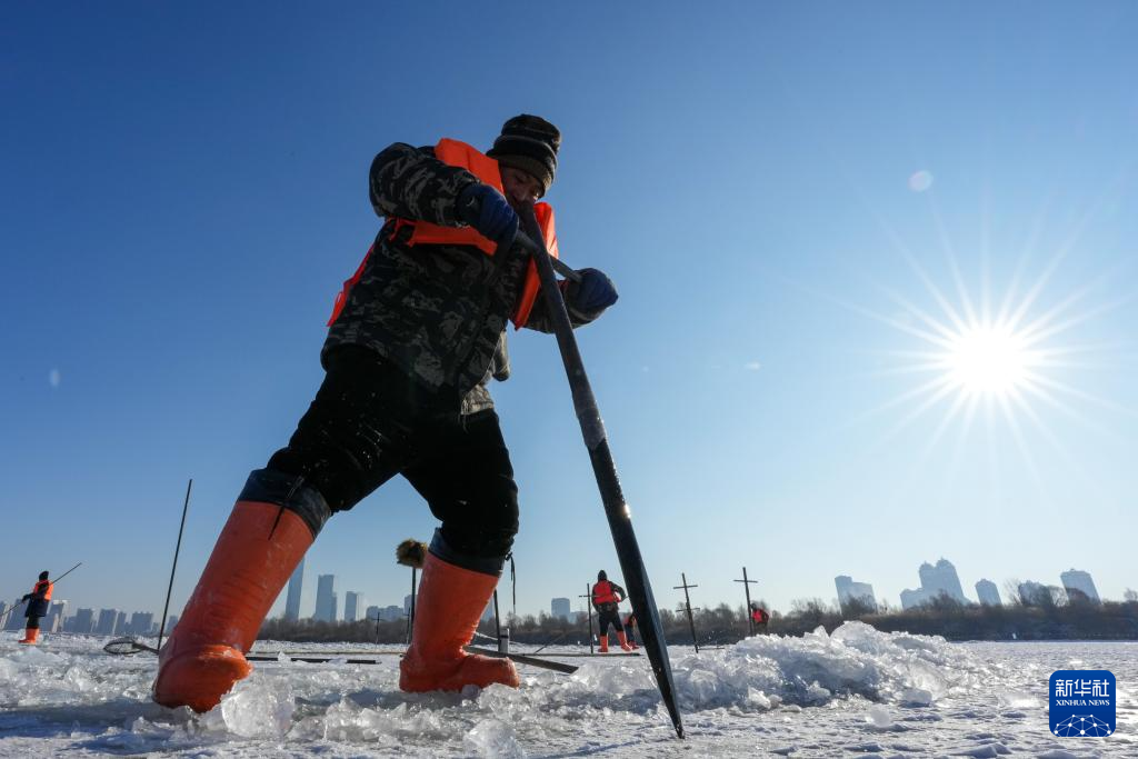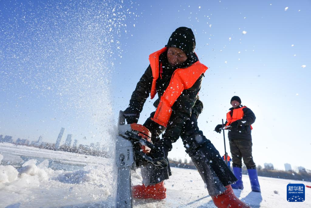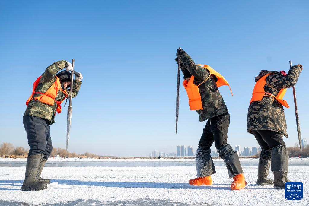 眼下,“冰城”哈尔滨采冰工作全面展开,采冰工人从松花江上采出优质冰料,源源不断地运往冰雪大世界园区等地,用于景观建设。