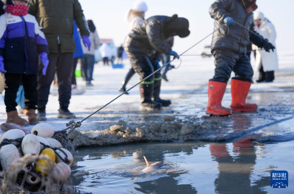 1月8日,吉林·查干湖第24届冰雪渔猎文化旅游节在捺钵广场拉开帷幕。查干湖之上,人工凿冰、马拉绞盘、冰下走网等渔猎技艺有序展开,引来各地游客。