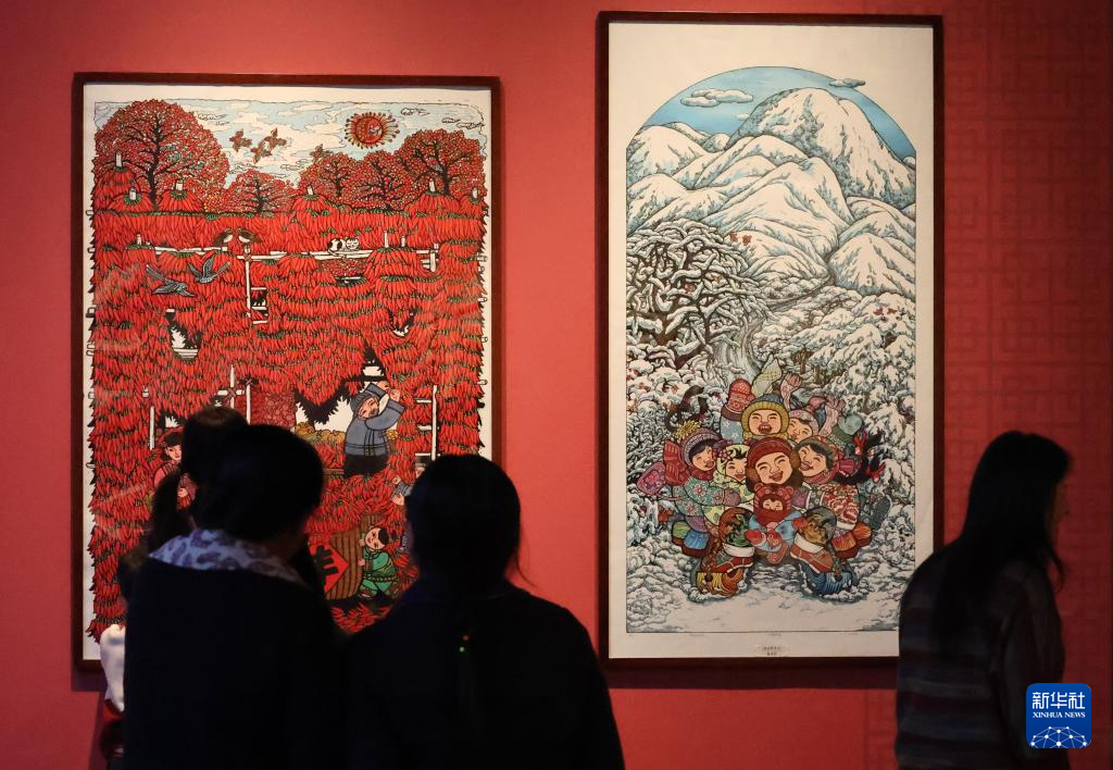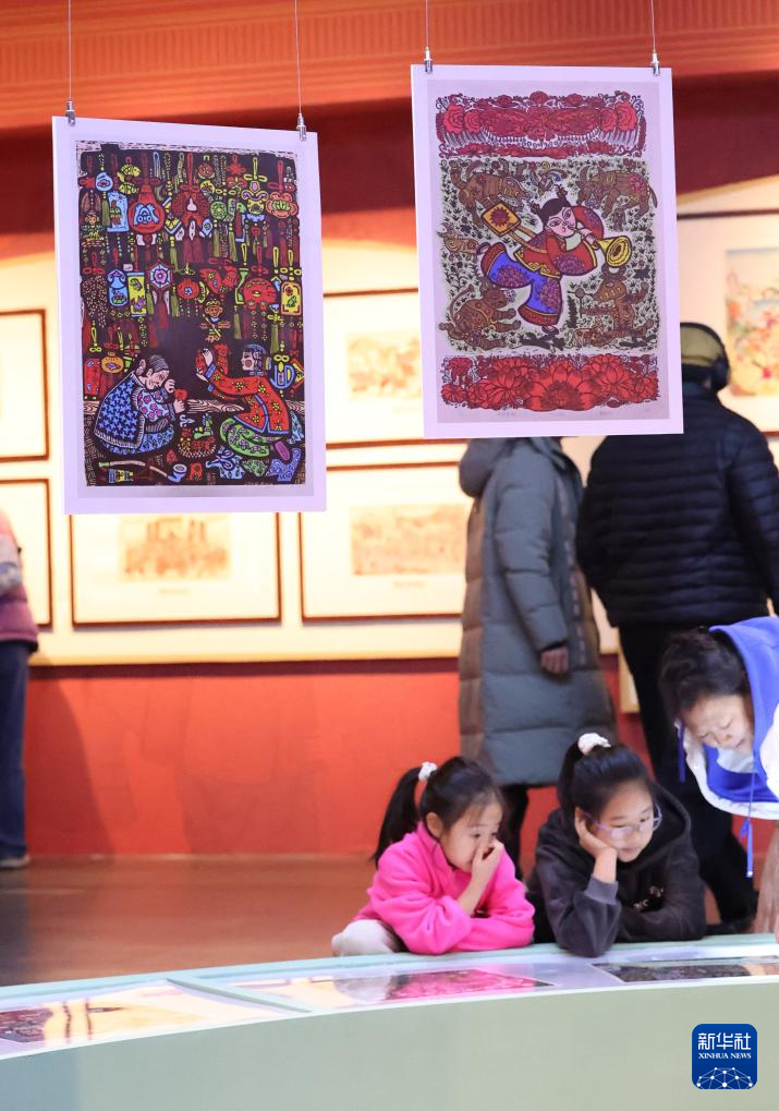 1月16日,观众在辽宁省博物馆观看展出的年画作品。