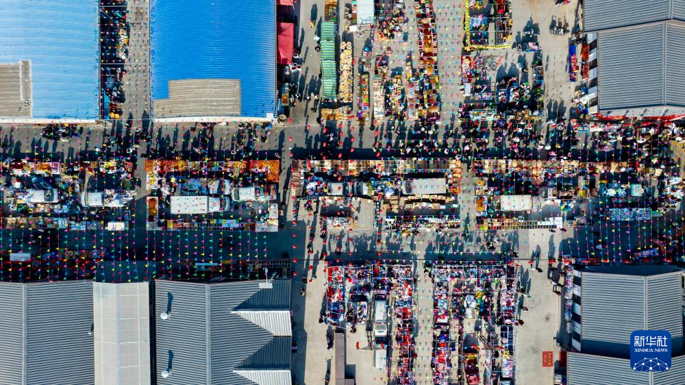 临近春节,宁夏银川市贺兰县金贵镇的金贵大集上货品丰富,人头攒动,洋溢着浓浓的新年氛围。