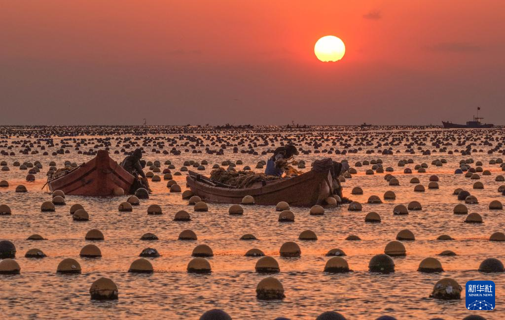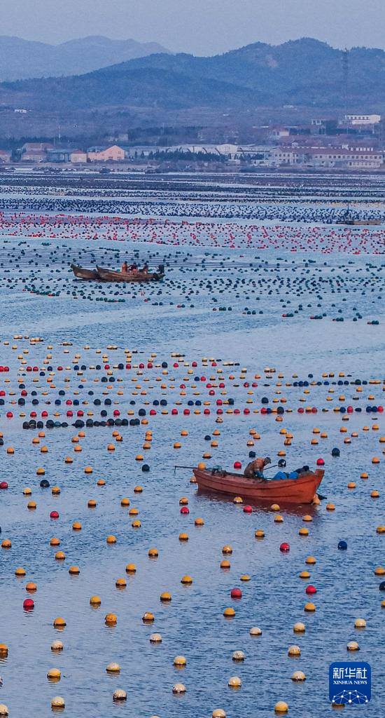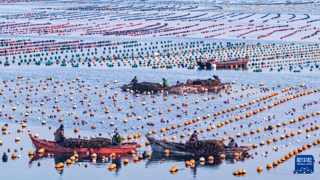 眼下,山东省荣成市小海带迎来收获季,养殖工人忙碌收获,投放春节市场。