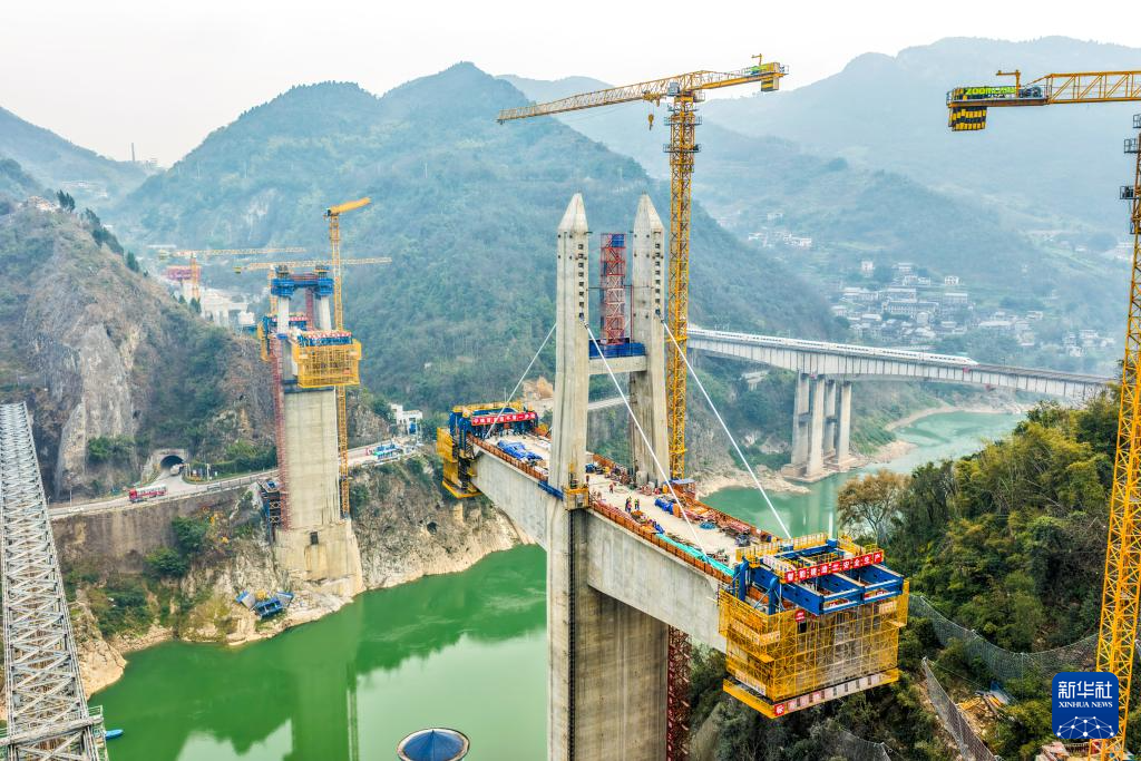 西渝高铁嘉陵江特大桥是全线控制性工程之一,位于重庆市北碚区,跨越嘉陵江,设计为矮塔斜拉桥。