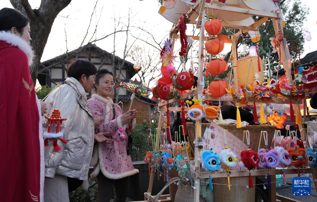 2月11日,游客在西溪湿地购买传统花灯。