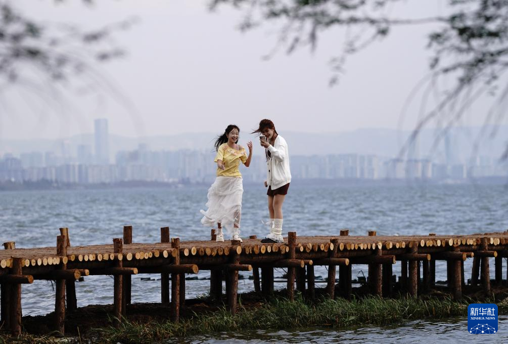 春日暖阳下,昆明滇池碧波荡漾,远山如黛,红嘴鸥翩跹起舞。游人沿岸漫步、驻足拍摄,共绘出一幅生动宜人的春游画卷。