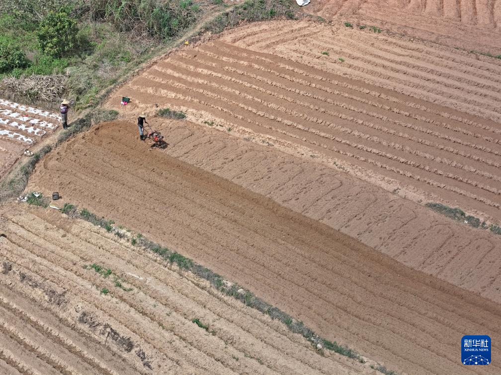 初春时节,广西南宁市邕宁区蒲庙镇村民忙着春耕春管,田园里一派繁忙景象。