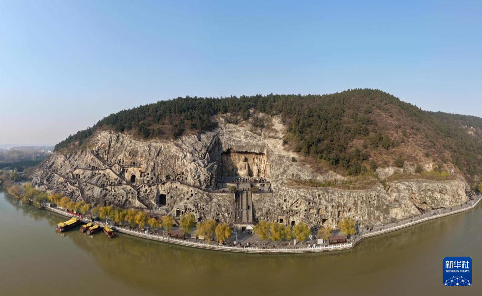 2025年4月24日,游客在河南省洛阳市龙门石窟景区游览(无人机照片)。
